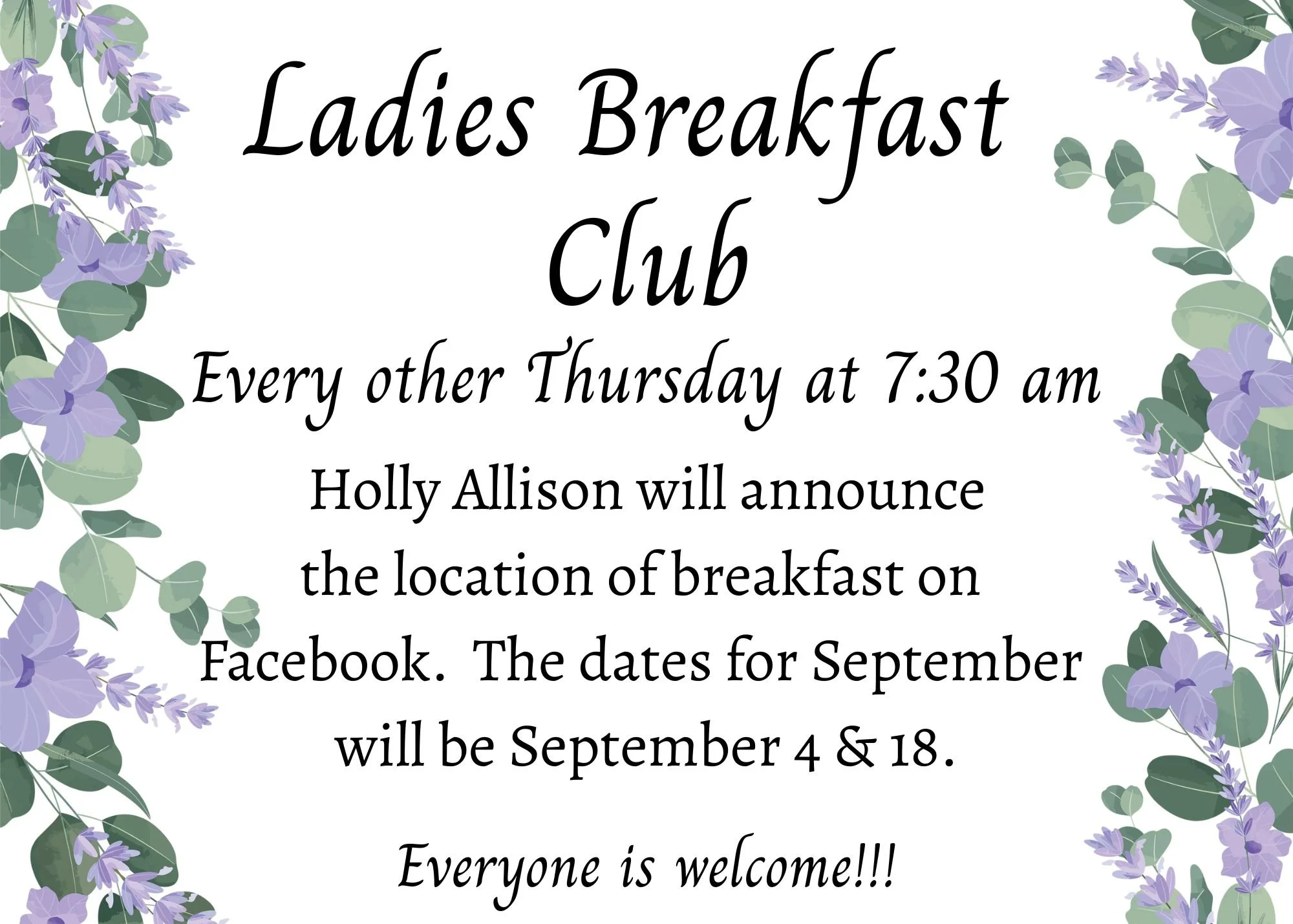 Aug 7 7:30 AM07:30 Ladies Breakfast Club Thursday, August 7, 2025 7:30 AM 8:30 AM 07:30 08:30 Google Calendar ICS View Event →