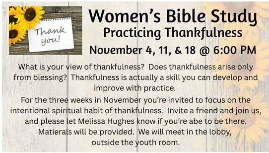 Nov 18 6:00 PM18:00 Women's Bible Study Tuesday, November 18, 2025 6:00 PM 7:00 PM 18:00 19:00 Google Calendar ICS View Event →