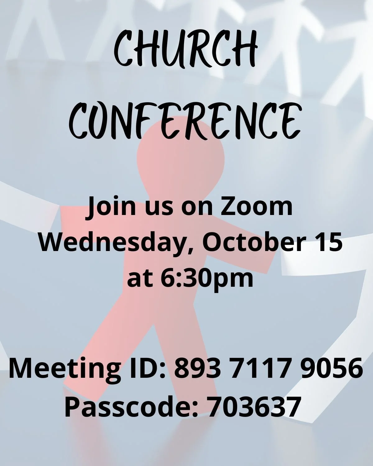 Oct 15 6:30 PM18:30 Church Conference Wednesday, October 15, 2025 6:30 PM 7:30 PM 18:30 19:30 Google Calendar ICS View Event →